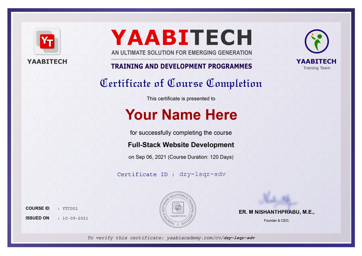 The Full-Stack Web Development course is designed to equip you with in-depth knowledge of both front-end and back-end development. Whether you're a beginner or an experienced coder looking to upskill, this course provides a step-by-step learning path with hands-on practical exercises, live projects, and real-world applications to ensure you gain industry-ready expertise.