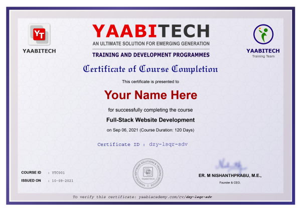 Certificate Verification: Each certificate includes a unique certificate ID, verification link, and QR code, enabling employers or other verifiers to confirm its authenticity and validity. They can verify the certificate by visiting the verification link, entering the certificate ID, or scanning the QR code to access the verification page. By providing the required details, they can access the certificate holder's non-personal information, certificate details, and validity.